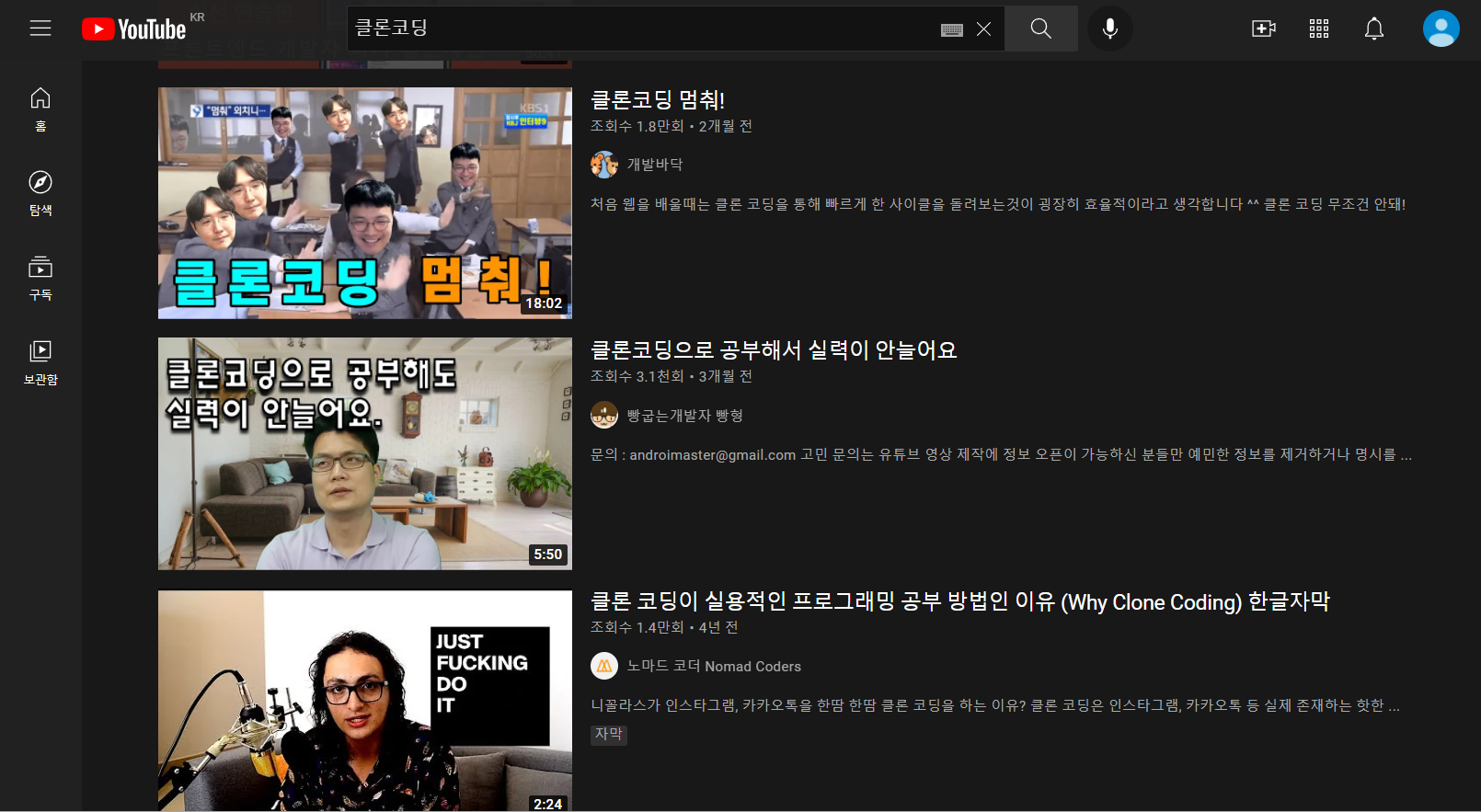 클론 코딩에 대해 더 자세히 알아보기 위해 유튜브에 검색을 해보았더니 이런 썸네일들이 보인다.