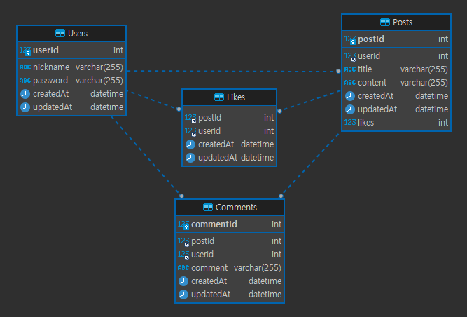 Node.js 숙련주차 개인과제 - ERD 작성