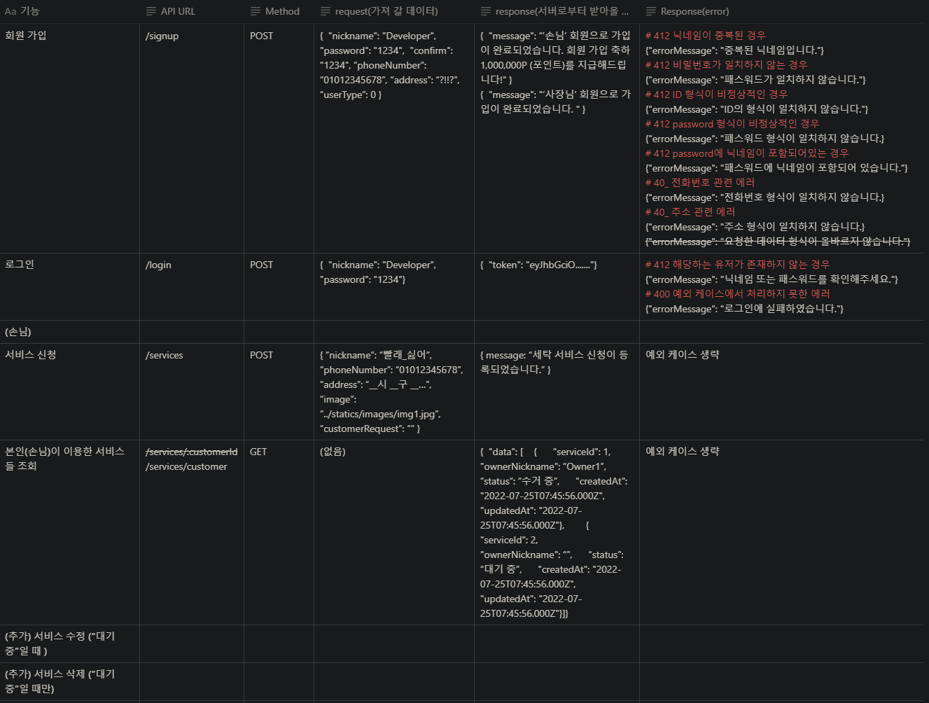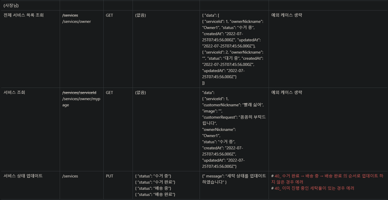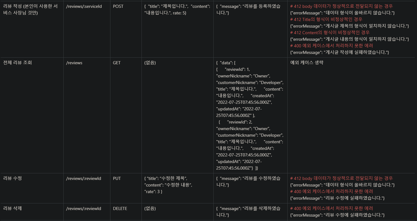 - 서비스 수정 및 삭제, 리뷰 삭제를 제외한 모든 API를 구현하였다.