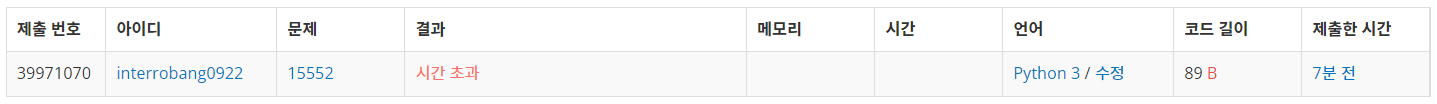 동일한 문제를 푸는 것이기 때문에 알고리즘 자체는 같지만 이번 문제에서는 테스트케이스 개수가 매우 많기 때문에 똑같이 코드를 짜면 시간 초과가 발생하는 것을 볼 수 있다.