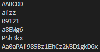 총 다섯줄의 입력이 주어진다. 각 줄에는 최소 1개, 최대 15개의 글자들이 빈칸 없이 연속으로 주어진다. 주어지는 글자는 영어 대문자 ‘A’부터 ‘Z’, 영어 소문자 ‘a’부터 ‘z’, 숫자 ‘0’