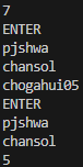 첫번째 새로운 사람이 들어온 뒤 pjshwa, chansol, chogahui05은 모두 곰곰티콘으로 인사했다. 두번째 새로운 사람이 들어온 뒤 pjshwa와 chansol은 다시 곰곰티콘으로 인사했다.