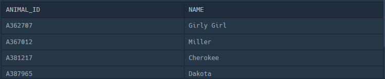 | [programmers - MySQL] SELECT: 동물의 아이디와 이름 (0) | 2023.08.01 |