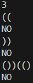 *key point: 단계에 맞게 자료구조를 활용하지는 않았다. temp라는 변수를 만들어 '(' 면 1을 더하고 아닐때 1을 뺐다. 음수가 되어버리거나 반복문을 다 돌았을 때 0이 아니라면 NO, 0이라면 YES가 된다.