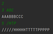 문자열 S를 입력받은 후에, 각 문자를 R번 반복해 새 문자열 P를 만든 후 출력하는 프로그램을 작성하시오. 즉, 첫 번째 문자를 R번 반복하고, 두 번째 문자를 R번 반복하는 식으로 P를 만들면 된다