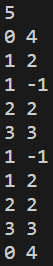 첫째 줄에 점의 개수 N (1 ≤ N ≤ 100,000)이 주어진다. 둘째 줄부터 N개의 줄에는 i번점의 위치 xi와 yi가 주어진다. (-100,000 ≤ xi, yi ≤ 100,000) 좌표는 항상 정수이고, 위치가 같은 두 점은 없다.
