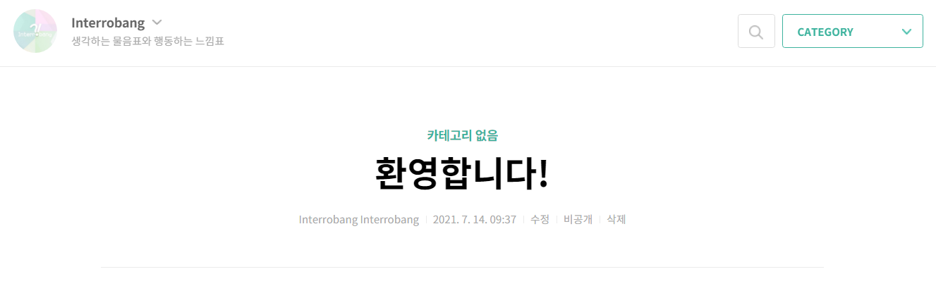 블로그를 개설하고 아싸 좋구나 하고 있었는데 처음 보이는 '환영합니다!' 글 아래에 닉네임이 두 번 보이네요.